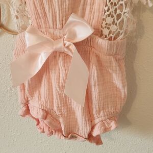 Adorable pink kids bottoms with lace ruffles. Perfect for a stylish and comfortable look. Worn once for 6 M photos. Still in like new condition, purchased from Reviere Threads. (Brand name unknown, brand selected for views)