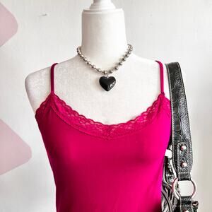 Pink‎ Lace Trim Tank Top, Y2K Coquette Soft Girl Romantic 2000s Small
