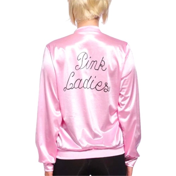 Step into the spotlight with this iconic Pink Ladies jacket in a size Small! This shiny light pink satin bomber-style jacket features “Pink Ladies” lettering on the front and back, just like the unforgettable look from Grease. Perfect for a 50s-themed party, Halloween costume, rockabilly event, or just to channel some retro chic style.