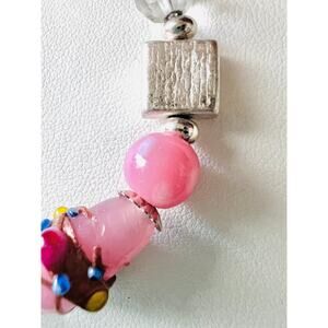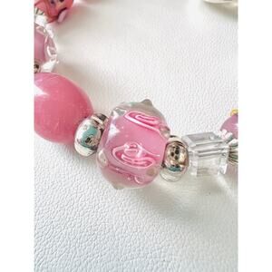 Pink Lampwork Glass Beaded Bracelet Artisan Handmade Toggle Clasp 8”