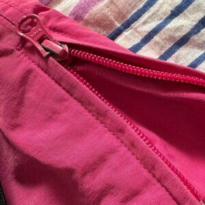 The perfect rosy pink bib overall snow pants! Size 3T from Lands' End with adjustable straps, extra knee and butt padding and the ability to "grow" to stretch out the length of time they can be worn. Used but amazing condition, you can see some wear on the zipper and there is very slight fading on the butt and knees. These are warm and comfy and sturdy and I wish they came in my size.