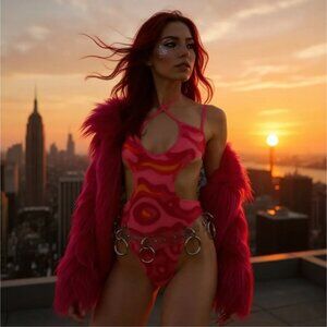 Pink Lava Layla Bodysuit by Ivy Berlin – Cut‑Out Festival Statement NWT XL