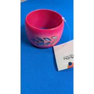 Pink Leaf Design Bangle Bracelet By Anika Collection plastic resin new