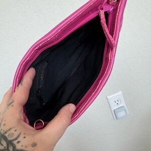 Chic and stylish pink leather clutch perfect for any occasion. Add a pop of color to your outfit with this elegant accessory.