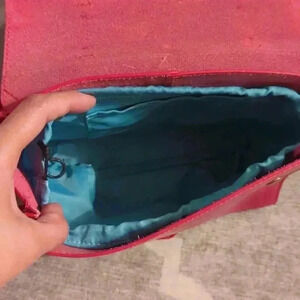 Features a shoulder/crossbody strap that can be removed; exterior buckle with snap closure; two interior slip pockets