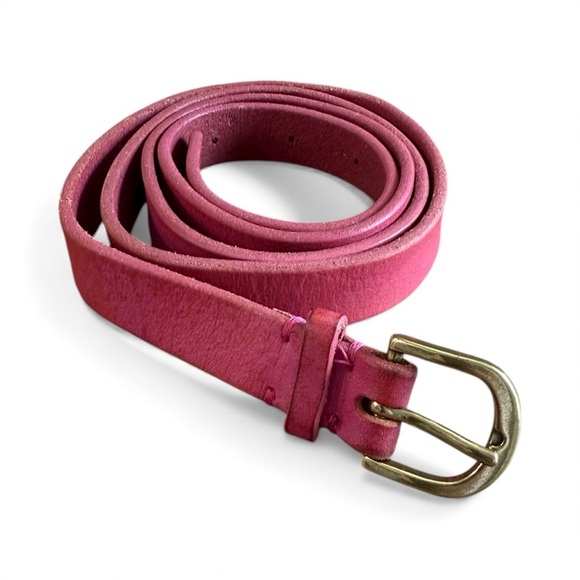 Elegant rose leather belt by J. Crew. Features a stylish gold buckle. Ideal for adding flair to any outfit. Good pre loved condition. No swollen holes.