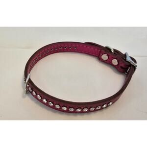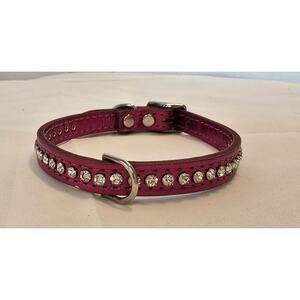 The Pink Leather Rhinestone 16" SM Dog collar by OmniPet is a stylish and luxurious accessory for small dogs, like Chihuahuas. Made from leather, this adjustable collar features rhinestone/diamante detailing, adding a touch of glam to your furry friend's wardrobe. The collar comes with a tag that can be personalized with your pet's name and phone number for added security. Made in China, this unisex collar is a perfect blend of fashion and functionality for your beloved small dog.