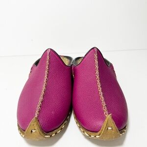 Pink Leather Yemeni Slippers: Handmade Pointy Toe Clogs, Size 7.5