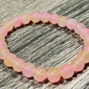 This elegant bracelet features a beautiful blend of pink and cream beads, perfect for adding a touch of sophistication to any outfit.