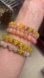Set of vibrant beaded bracelets featuring yellow and pink beads. Perfect for adding a pop of color to any outfit.