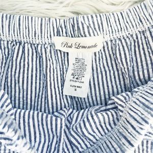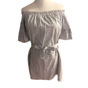 Pink Lemonade Seersucker Off Shoulder Dress Blue White Striped Belted Small