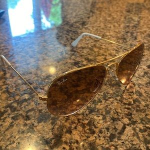 Barely worn, gold trim, pink lens aviator ray ban sunglasses