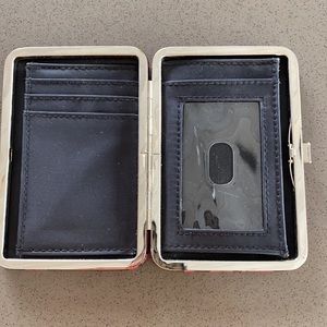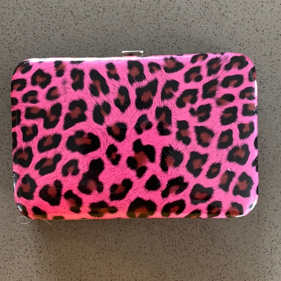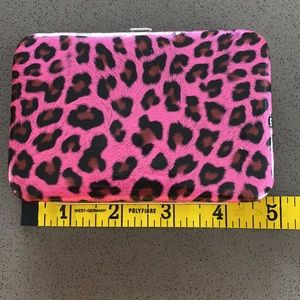 Hot pink leopard card holder with a slot for folded cash. Never used but has one dot/hole from storage showed in 3rd picture.