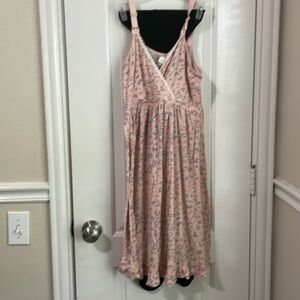 Stylish pink dress with a leopard print design. Features adjustable straps and a button front. Also comes with a little gown adjustable straps on that also.