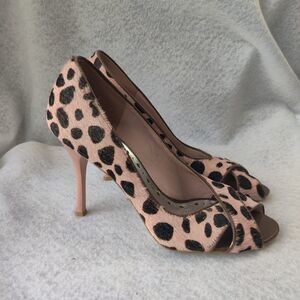 Pink Leopard Print Calfhair High Heels Stilettos BCBG Sz 7