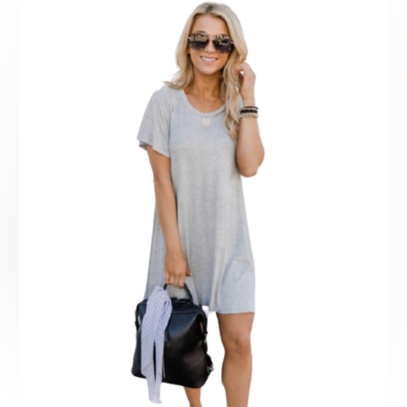 This T-shirt dress is such a must-have for spring or any fun vacation. The classic is so cute - we love this stylish dress, it's such a timeless piece. This dress is so comfortable and can be styled so many ways! Pair with a jean jacket and sneaker or dress it up with wedges and a necklace!