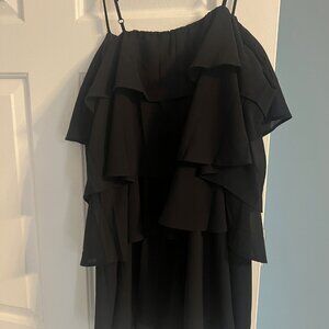 Pink Lily Black Ruffle Romper size large, never worn. Didn't return in the proper timeframe, super cute to dress up or wear casual to a concert!
