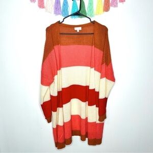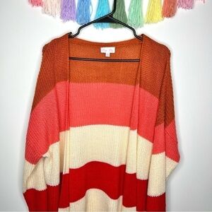 Title: Pink Lily Boutique Colorblock Chunky Stripe Knitted Tunic Length Long Sleeve Tunic Cardigan Size Medium
