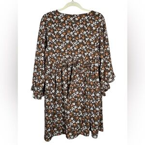 This casual sundress from Pink Lily features a charming brown and white color palette, complemented by a v-neckline and 3/4 bell sleeves. Its relaxed fit and airy fabric make it perfect for a laid-back day out.