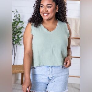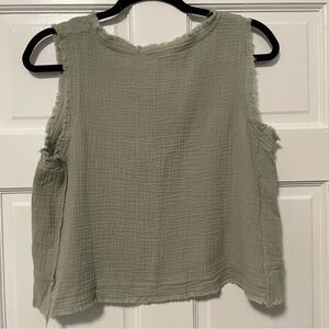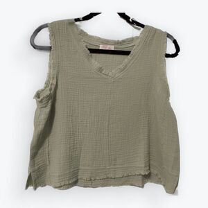 Pink Lily Call To Action Frayed Hem Gauze Tank Sage Green Size Medium