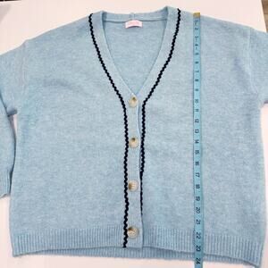 Pink Lily Cardigan Sweater Size M/L pastel Blue Prep Ivy League CURRENT STYLE