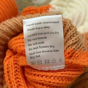 Pink Lily Colorblock Orange cream tan turtleneck sweater women’s size XL. Sweater is in fantastic preowned condition with no rips, holes, or stains. Made out of 100% acrylic. Made in China. Measurements are 27 1/2 inches pit to pit x 27 inches length.