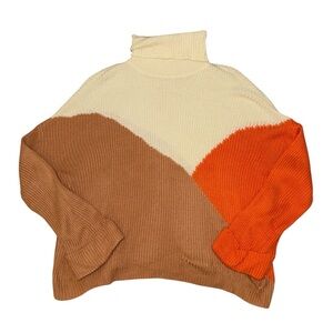 Pink Lily Colorblock Orange cream tan turtleneck sweater women’s size XL