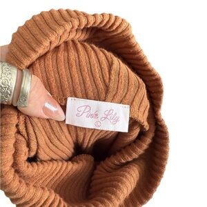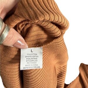 Warm and stylish brown turtleneck sweater dress. Perfect for chilly days. Super lightweight. Can be worn alone or with tights! Simple mock neck/turtleneck and ribbed material!