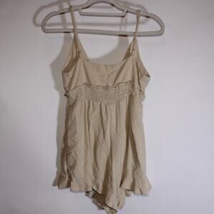 Pink Lily Cream Linen Blend Romper With Ruffles Size M