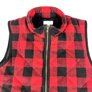 Pink Lily Flannel quilted Vest Red Black Plaid zipper pockets Lined Insulated Preppy Y2K Classic Womens SZ LG