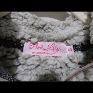 Pink Lily Fleece Gray Sherpa Snowy Daydreams Cozy Pullover Jacket Small Lounge