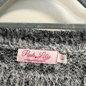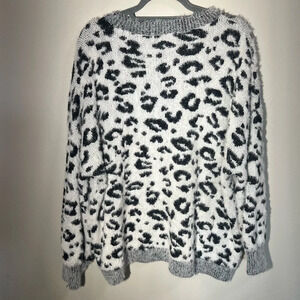 Pink Lily Fuzzy Soft Black White Leopard Animal Print Oversized Crew Sweater L