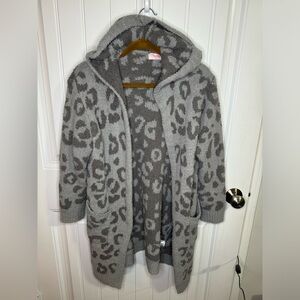 Pink Lily Gray Leopard Print Soft Hooded Cardigan