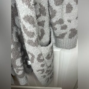 Stay cozy and stylish with this gray leopard print hooded sweater. Perfect for layering and adding a chic touch to any outfit.