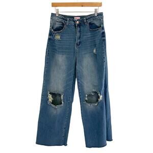 Pink Lily High Waisted Medium Wash Distressed Wide Leg Jeans Size 29 0634W