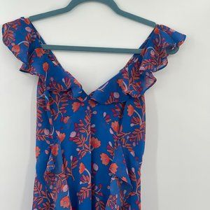 Pink Lily It’s Not A Dream Floral Maxi Dress sz S Basque Waist Flutter Ruffles