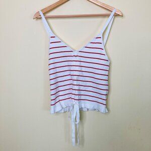 Pink Lily Knit Tank Top Women's Medium White Red Stripe Summer Tie Front