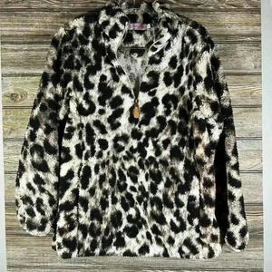 Pink Lily Leopard Sherpa Half Zip Pullover Size Small