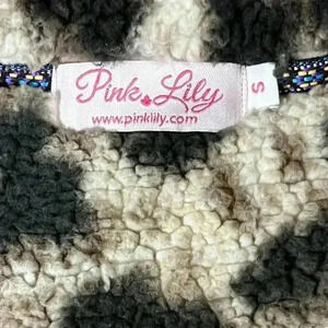 Pink Lily Leopard Sherpa Half Zip Pullover Size Small. Half zip front with two deep side pockets. Flat laid measures 20" from armpit to armpit and 26" from shoulder to hemline.