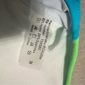 Chic one-shoulder design. Features lime and teal colorblock. Perfect for beach days. Never worn