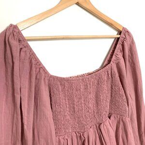 Pink Lily Mauve Long Sleeve Smocked Mini Dress Small Babydoll Milkmaid Boho