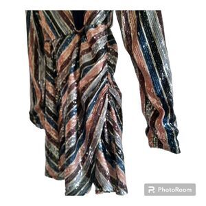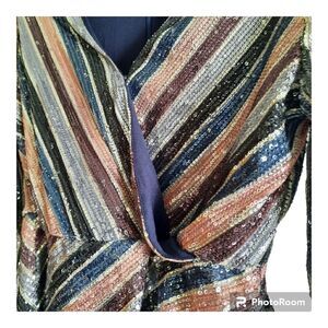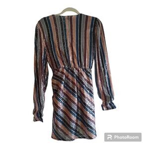 Pink Lily Multi Sequin Faux Wrap Long Sleeve Mini Cocktail Party Dress