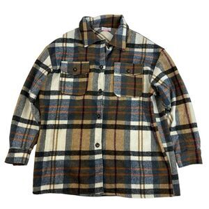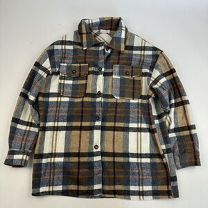 Pink Lily Multicolor Plaid Button Up Shirt Shacket Thick Fleece Polyester Size S