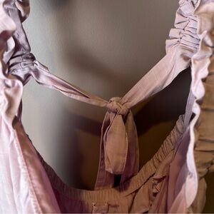 Featuring a lightweight soft material that makes this blouse so comfy and easy to wear all day long. Plus we adore the cute ruffle straps, flowy feel, and self tying back.