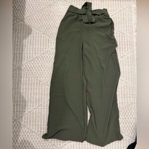 Chic olive pants with ruffle detail. Versatile and stylish.