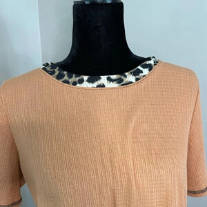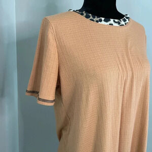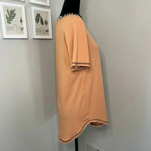 Pink Lily Orange Ribbed T-Shirt with Animal Print Trim