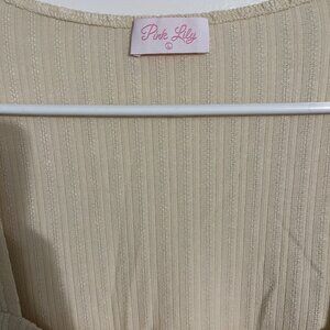 Pink Lily Perfectly Content Beige Ribbed Knit Top - Large