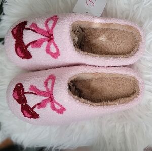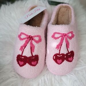 NWT Pink Lily Pink Cherry Bow Slippers - Size 9/10