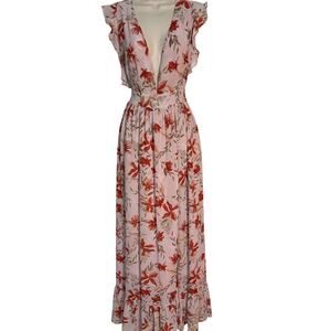 Pink Lily Pink and Red Floral Maxi Dress, Women's Size S