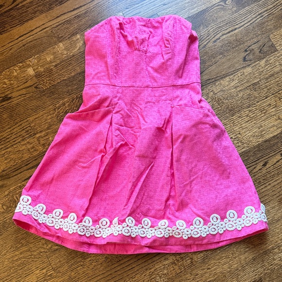 Pink Lily Pulitzer Strapless Dress with White Floral Trim